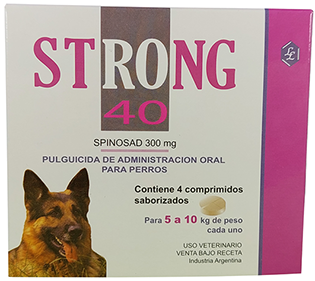 Strong 40: Spinosad 300mg, excipientes c.s.p. un comprimido de 750mg.